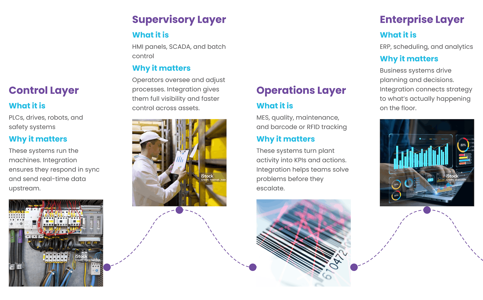 ✓ Reality: Integration spans controls, data, MES, ERP, and OT networks