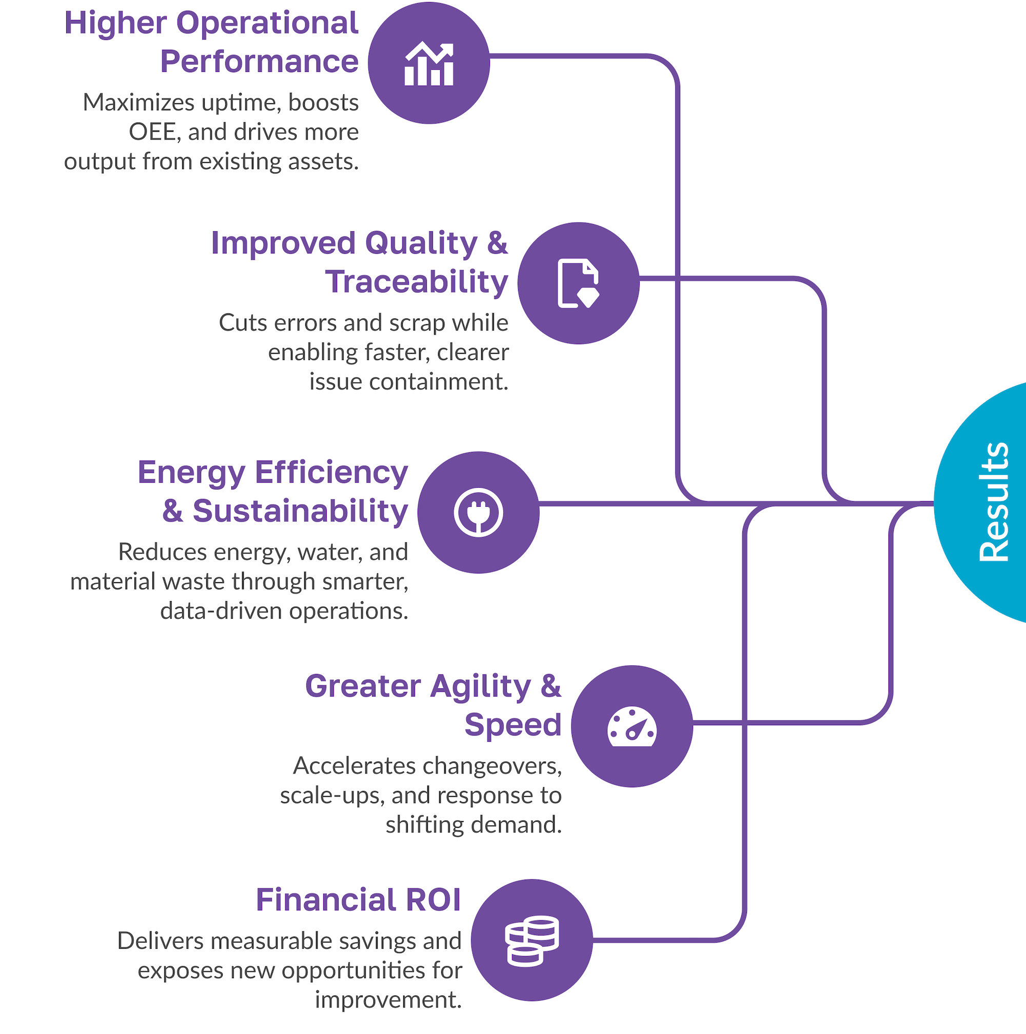 | Plant Managers / Operations Managers | Higher equipment uptime and smoother production, with improved OEE and reduced downtime. Predictive maintenance identifies issues before failures occur, helping reduce unplanned downtime. Real-time manufacturing data improves resource allocation and reduces day-to-day firefighting, improving safety and output. |